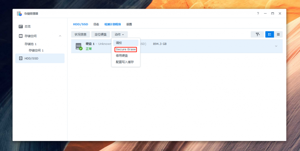 1、在 DSM 中,进入存储管理器 > HDD/SSD。